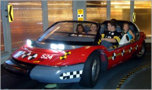 The ride system was something never before seen in a theme park and required a lengthy test period resulting in the attraction’s opening to be delayed from May 1997 to March 17th 1999. The ride system was ground breaking at the time. It functioned like a giant slot car (think Hot wheels on the track or Autopia) with all four tires contacting the “road”. it even had real disc breaks like on modern cars, and a rollercoaster derived assembly underneath to keep the vehicles locked onto the track. Each vehicle had more computing power than the space shuttle!