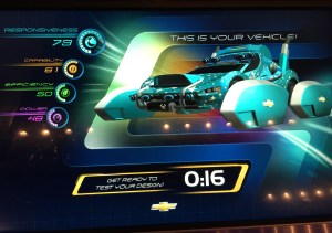 Said vehicles made in the design portion had to comprise of Power, Capability, Efficiency, and Responsiveness. The guest with the highest score between all four categories would be shown at the end of the attraction. I actually found multiple articles about how to get the top score. The example car below was the top score of the day at 232 points (a combination of all four ratings)!